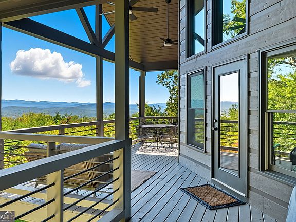 180 LONG-RANGE MOUNTAIN VIEWS! Escape to the mountains and embrace pure tranquility at this furnished, turnkey Rustic Modern Mountain Chalet showcasing luxury, comfort, and complete privacy. Perched atop an exclusive gated community, this 4BR/3.5BA architectural masterpiece sits on 2 lots totaling 2.69 acres and spans 2,651 sq. ft. of thoughtfully curated living space blending modern sophistication with natural mountain beauty. Inside, you'll find soaring cathedral ceilings, walls of glass framing endless ridgelines, and a dramatic stacked-stone fireplace in the open-concept great room. The designer chef's kitchen features quartz countertops, premium stainless appliances, and custom soft-close cabinetry-perfect for elevated entertaining or everyday comfort. The spacious primary suite on the main level offers a luxurious spa-like bathroom and direct deck access to take in the breathtaking mountain views. Upstairs includes a cozy sitting area, two additional bedrooms, and a full bathroom-providing the perfect retreat for family or guests. The terrace level offers a private guest suite, recreation room, and second sitting area-ideal for entertaining or extended stays. Step outside to enjoy multiple expansive decks, a wraparound porch, a saltwater hot tub overlooking the mountains, and a landscaped yard designed for outdoor living and unforgettable sunsets. Every detail has been meticulously updated-new flooring, lighting, paint, railings, remodeled bathrooms, plus a whole-home generator and advanced water filtration system for peace of mind. Whether a full-time sanctuary, luxury vacation escape, or profitable short-term rental, 615 Cherokee Circle delivers unparalleled beauty, privacy, and mountain elegance-all in a move-in-ready, fully furnished package. Few personal items will not remain with the home sale; see list in documents.