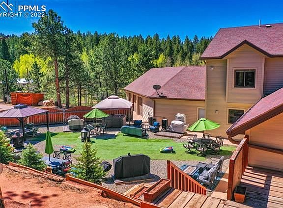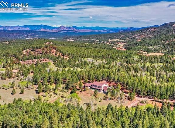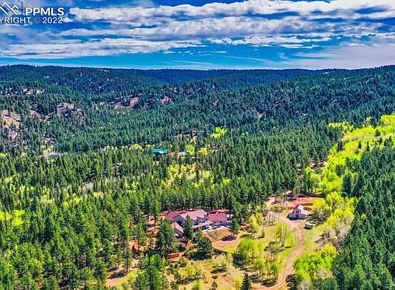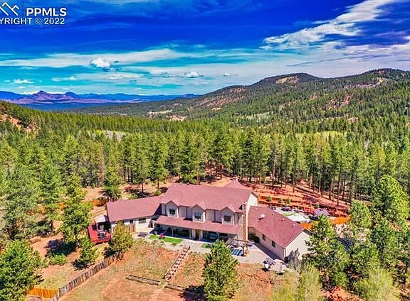 Incredible estate home/lodge and or VRBO on on 21 plus acres of "AG" land that backs up to National Forest. Zoned for horses. Completely fenced. Seven bedrooms, six bathrooms. Private Location. Everything in this home is oversized. Large barn with hay storage. Main level living. Huge Mudroom!Gourmet kitchen, including four foot wide countertops, tile flooring, hickory cabinets, double ovens, gas cook-top and a walk-in pantry. An entire wing of home is designated master suite. Master Suite has a kitchen. Master suite includes; laundry area, sitting room, dressing room, walk-in closet, elegant bathroom and master bedroom with vaulted ceilings and fireplace and a huge deck. Barn wood accents the walls and ceilings in the family room, fireplace can accommodate very large logs (now that s a fire). Massive dining area with tile floors. Real rock fireplace in living room. There is a huge game/theater room. Main level office and guest bedroom complete with private bathroom. Five well appointed bedrooms on the upper level, jack and jill concept on four of the bedrooms (each one complete with a private loft). Seventh bedroom has its own attached private bath. Bonus/recreational room on upper level, located in-between upper level bedrooms. Two laundry rooms! Several walls have hand sculpted 3-dimensional artwork of wildlife and landscape scenes, which ads to the charm of home. In floor radiant hot water heat. There is two huge areas for outdoor entertaining with grills and lots of siting areas and a pond. There is Red Rocks/outcroppings. There is two hot tubs. There is lovely walking trails. The perfect location for intimate exchanging of vows, family gatherings or out door activities. This is an incredible home to live in or use as a VRBO. Property is zoned A-1. There is a separate work shop in the garage. This home has a barn, stalls and pasture area. This is a beautiful Colorado Home!