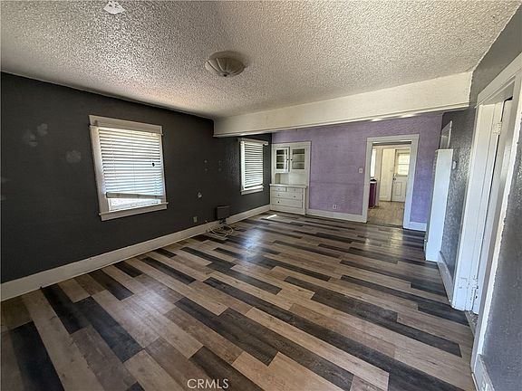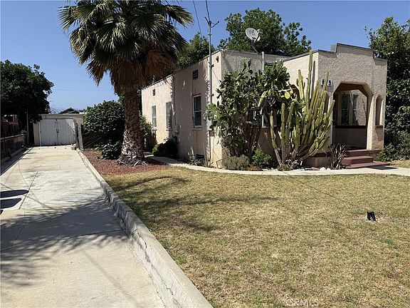 Discover an incredible opportunity, where charming curb appeal meets exciting renovation potential. This Spanish Colonial style home, with its inviting arched entryway, prominent palm tree and mature cacti, offers a fantastic canvas for your dream transformation. A generous front yard and a long concrete driveway leading to a detached garage provide ample outdoor space and parking. Inside, the property boasts versatile living areas, including a main room with new-look laminate wood flooring and a built-in hutch, ready for your personal touch. The kitchen, with its distinctive purple cabinetry, gas range, and sink, offers a functional foundation for a modern upgrade. Two bedrooms present unique features: one with laminate wood flooring and an air conditioning unit, and another with a cozy wood-paneled accent wall and carpeting. A classic bathroom with a white-tiled tub and vanity awaits your refresh. This property is ideal for investors, DIY enthusiasts, or anyone eager to create their perfect home. Don't miss the chance to unlock the potential of this unique property and transform it into a true gem! Schedule your private showing today!