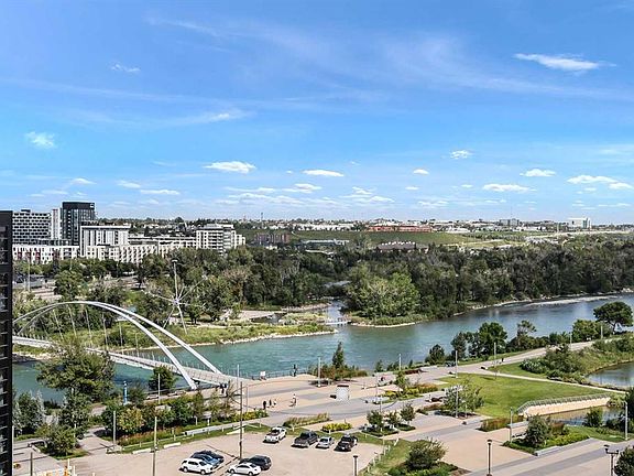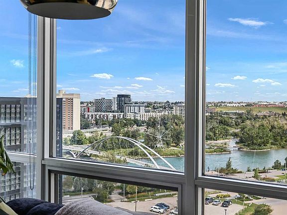 Welcome to The Verve—where modern design meets unbeatable convenience in Calgary’s East Village. Built by award-winning developer FRAM + Slokker, this 2-bedroom plus flex space, 2-bath condo combines sleek finishes with thoughtful design in one of the city’s most vibrant communities. Step inside to a bright, open layout with 9’ ceilings and floor-to-ceiling windows framing sweeping city and river views. The Euro-inspired kitchen features quartz countertops, stainless steel appliances, and a large eat-in island, perfect for casual dining or entertaining. The primary bedroom includes a private ensuite, while a second bedroom and flex space offer versatility for guests or a home office. Oversized tiled bathrooms, in-suite laundry, and a spacious balcony with gas BBQ hookup add everyday comfort and style. Life at The Verve comes with premium amenities: a fitness studio, resident lounge with kitchen, a landscaped courtyard with cabanas, and a rooftop Jacuzzi overlooking Calgary’s skyline. Secure underground parking, bike storage, and visitor stalls make urban living effortless. Outside your door, discover the best of East Village—river pathways, St. Patrick’s Island, the New Central Library, cafés, restaurants, and shops. With the CTrain just blocks away and quick access to Inglewood, Kensington, 17th Ave, and Stephen Ave, this is city living at its best.