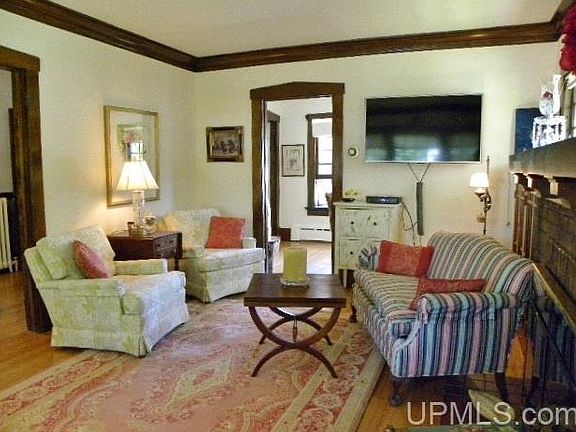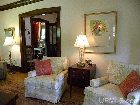 Character galore! Quality brick home on the Iron Mountain's east side. Original woodwork, French doors, wood floors, fireplace with built in bookcases in living room, front foyer with central staircase, formal dining room, breakfast nook, sunroom. Well maintained. Beautiful gardens of perennials, bulbs and shrubs. Fenced yard. Patio area perfect for entertaining.
