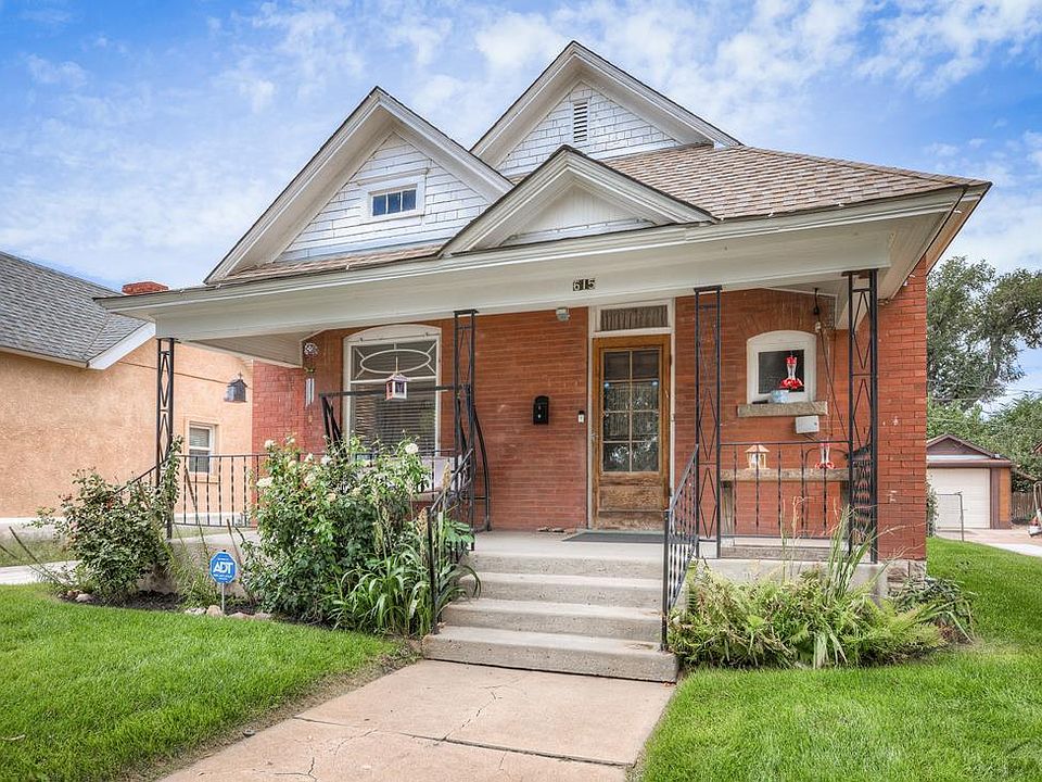 This lovely 1909 home has been up-kept well and has all the charm that it was built with but with some key modern updates. Within the home's 1,828 square feet are beautiful, shouldered archways and original doors not to mention 3 bedrooms and 1 full bath. Just check out that front door on the porch! Coming in that door you enter a good-sized entryway with a large closet great for coats, bags and shoes. The living and dining rooms are separated only by one of the many shouldered archways in the home, making it a great entertainment space. Continuing back from the dining room you enter the updated kitchen with all stainless-steel appliances and tons of cabinets! Off to the side of the kitchen is a small bedroom that would also make a great office space, or guest bedroom. Still off the kitchen space is the laundry/mudroom, that exits to the back of the house. Going back to the dining room, there is a hallway that leads to the other two larger bedrooms and the full bathroom. All the main living areas from the front entryway, living room, dining room and the front two bedrooms and hall are all original hardwood floors, with the kitchen being a beautiful large format tile. Off the back mudroom you can exit to the backyard, which has a large patio area plus space for gardening or landscaping. You can also access the detached one car garage. With the privacy fence this area will make entertaining friends, family, or a dog or two easy! Don't miss out on the charming redbrick house!