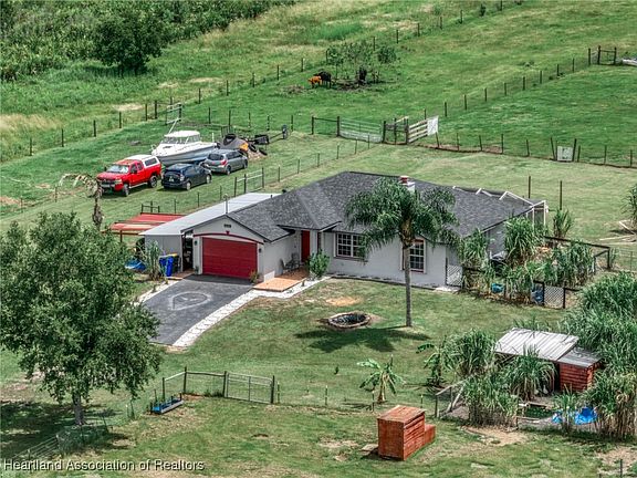 WOW!! A wonderful property situated on slightly over 16 acres of pristine Florida Zoned Agricultural land in the town of Venus, FL - this stunning homestead that has recently undergone a remarkable transformation is now ready for new owners to enjoy! Surrounded by the most beautiful land in cattle country that you will ever see, it will make you so happy to arrive home in such a beautiful setting every day. The main home has been masterfully updated PLUS the 2 bedroom, 1 bathroom mobile home/guest house has been well maintained throughout. The main home boasts 3 bedrooms on a split floor plan (the 1 car garage is currently converted into living space however the temp stud wall can easily be taken down - garage door opener still in place), 2 full bathrooms, remodeled kitchen with skylight, plus SO MUCH more! The designated dining area showcases a lovely sliding glass door incorporating a stunning view of the land through the screened-in back porch. The family room is complete with a wood burning fireplace and 12 ft. high vaulted ceilings, full tile flooring throughout. This home feels brand new since an extensive renovation was completed by the current owners notably including a new 2023 roof with permits, freshly painted inside & out, new 8'x40' outside lean-to includes tool storage/working area/animal closed storage/super cool outdoor bathroom and kitchen/20'x12' working area connected to outside storage under roof, new tankless water heater 2021, new stainless steel kitchen appliances 2020, reverse osmosis water system under sink (LIST OF COMPLETE UPGRADES AND DETAILS AVAILABLE UPON REQUEST). The 16 acres of land generously offers a remote control/keypad solar double gate entry, 2 well pumps (main pump for the houses with covered roof and sides), 2 well pumps for animals and irrigation with 3 irrigation timers, 3 gardens with fruit and vegetables, 2 lamb/goat enclosures, 5 chicken/small animal enclosures 1 with a pond, 4dog kennels/enclosed area, 1 cattle shoot, 2 electric panels separating cattle enclosure, sugarcane throughout, and a pond near the back of the property. Whether you dream of privacy, raising animals, enjoying your own self-sufficient homestead with so much to offer - the possibilities are endless!