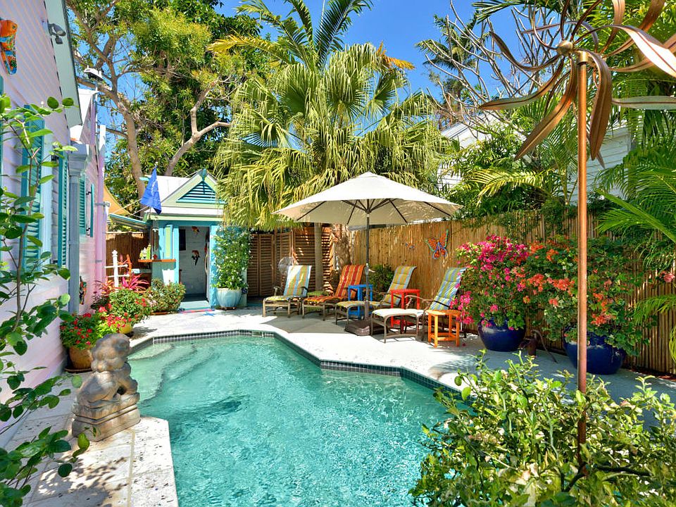 Tucked away behind a Pristine White Picket fence and an abundance of Bright Pink Bougainvillea you will find a true Key West Gem. This 3BR/3BA 1195 sq ft home with 241 sq ft Sleeping Loft and private Guest Suite is a true Tropical Oasis. Meticulously maintained, designer decorated and inspired by the vibrant colors of the Caribbean; there's no better way to experience Key West living. This private and gated Cottage features fine finishes: Koa Wood Floors, Vaulted Ceilings and Exposed Beams, Bamboo Walls, Unique Granite Countertops, & Stainless Appliances. What's the best part of an Island Home? Gorgeous outdoor surroundings with tropical landscape, large heated Saltwater Pool, Private Poolside Cabana/Bar & Custom Outdoor Shower, an enchanting environment. This is not in a Compound or Condo