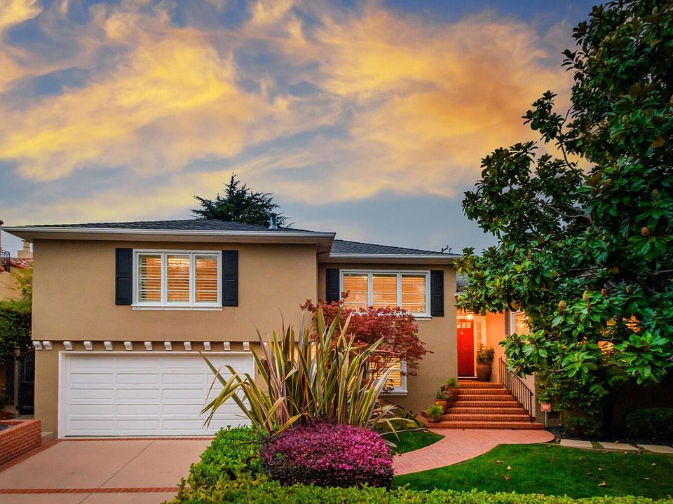 Extensively remodeled in Baywood, one of San Mateo premier neighborhoods. Hardwood floors and crown moldings throughout and plantation shutters on the street facing windows. Formal living and dining rooms plus fabulous kitchen and family room combination with gas-log fireplace, skylights, and stunning designer kitchen with counter and island seating. High-end appliances. On-wall media and surround sound. French doors to the rear yard with covered and heated dining area, fire pit, synthetic lawn, sport court, and flowering gardens. 3 bedrooms upstairs include primary suite plus lower-level bedroom or office and central playroom or great fitness center. Lots of options for working from home. Acclaimed Baywood Elementary School.