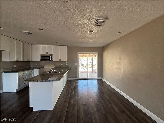 Updated kitchen layoutBreakfast barSpacious open floor planWhite cabinetryWood-look flooringGranite counters