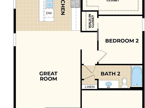 Spacious great roomOpen-concept kitchenWalk-in closet