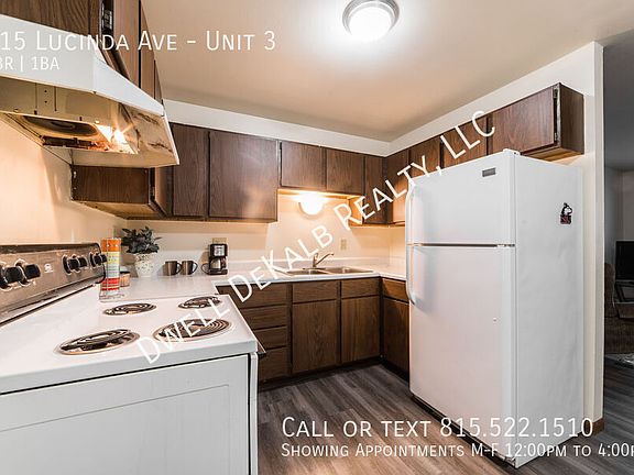AVAILABLE AUGUST 1st 2025! 1 Year Lease Features: Apartment Located Across from the NIU Student Center in Lucinda Oaks! Freshly Painted New Plank Flooring Installed throughout Central A/C Washer/Dryer on site Freshly Updated! Secured building Entry Tenant Pays all Utilities: Electric, Water/Sewer, TV/Internet Service Landlord Pays Garbage Coin Washer/Dryer In Hallway Electric Stove Forced Air Heating