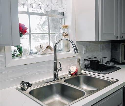 Covered carportStainless steel appliancesSubway tile backsplashNew light fixturesQuartz countertopCorner lotFreshly painted interior