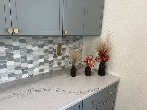 Quartz countertopsVaulted ceilingSolid core interior doorsCustom kitchen cabinets