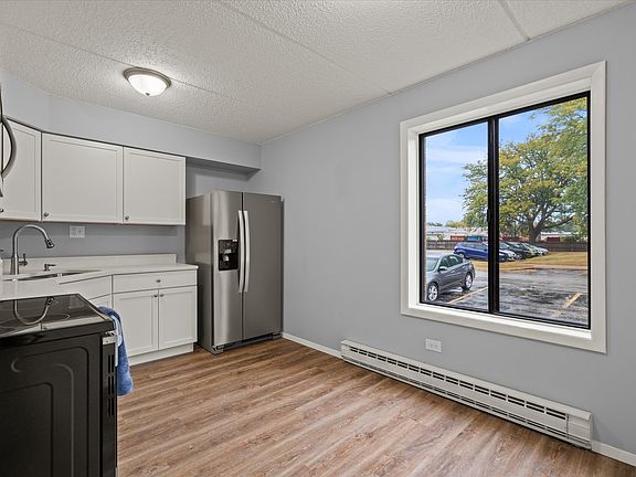 Welcome to this beautifully remodeled 1-bedroom, 1-bath unit, perfectly situated on the first floor. With 682 finished square feet, this sought after condo combines modern style and comfort. Step into the inviting living space featuring luxury vinyl plank flooring that flows seamlessly throughout the unit and common areas. The kitchen is a chef's delight, boasting elegant white shaker cabinets, stunning quartz countertops, and all stainless-steel appliances-perfect for culinary creations. The updated bathroom offers a fresh look with a new tub/shower, a sleek new toilet, and a stylish vanity, providing a serene retreat. The cozy bedroom features plush carpet and a custom walk-in closet, offering ample storage and organization. Stay comfortable year-round with two new air conditioning units and enjoy the convenience of an in-unit washer/dryer combo. This condo is not just a home; it's a lifestyle upgrade. Don't miss your chance to own this stunning, move-in-ready unit that perfectly blends modern amenities with a welcoming atmosphere!