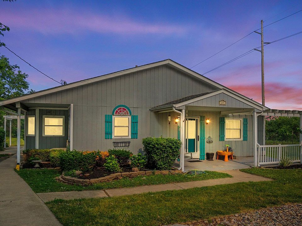 Looking for 8.6 acres in Allen County? Here is 3 Bedroom 2 Bath Ranch home offering 1597 square feet with an open concept on a slab/crawl space. The land includes some woods in the rear of the property. Located in the sought-after Southwest Allen County School District. Room enough to target practice, skeet shoot, trap, ride 4 wheelers, or golf cart. Farm animals are welcome! Two large, covered porches are great for relaxing on. As you walk into Large Kitchen, you will notice ample cabinet storage and countertop space. Nice eat-in 7x7 built-in custom booth/benches. The kitchen opens to the formal dining area and family room. Many windows allow natural light into each room. There is a 36' x 32' detached garage with plenty of room for your toys! Recent Updates Include: Vinyl plank flooring 2020, Storm door 2020, Furnace 2017, Water Heater 2021, Washer and dryer are less than one year old, oven/range one year old, and Roof is just a few months old, with newer windows throughout.