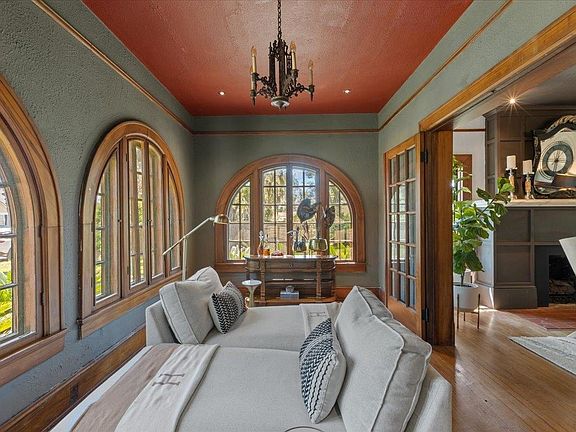 Welcome to 615 North Washington Street, a stunning Spanish-style residence built in 1925 and proudly celebrating her 100th birthday this year—though she looks better with every passing year. Situated on a beautifully landscaped .31-acre lot in the heart of downtown Perry, this 2,038-square-foot home blends timeless charm, professional design, and modern comfort, all within walking distance to local shops, dining, and everything downtown Perry has to offer. Lovingly preserved and professionally reimagined by renowned interior designer Judson Willoughby, this home radiates a bold, moody aesthetic and an attention to detail that sets it apart. The stucco exterior, arched wood windows, and stone-coated metal barrel tile roof reflect classic Spanish architecture, while every major system has been thoughtfully updated to ensure lasting comfort and style. Significant improvements include a new electrical system and breaker box, updated plumbing, foundation lifted and reinforced with steel, AC ductwork relocated through the attic, and a fully replaced roof. The newly remodeled kitchen, baths, and laundry room boast custom cabinetry, stainless steel appliances (2024), Bluetooth recessed speakers in the kitchen, dining, and bath, and custom closets throughout. Inside, original hardwood floors and restored woodwork highlight the craftsmanship of a bygone era. The living room centers around a gas fireplace, creating a cozy and sophisticated gathering space. The solarium, filled with natural light from its original arched windows, offers a serene retreat for reading, relaxing, or creative inspiration. The kitchen is both functional and inviting, featuring an eat-in bar, walk-in pantry, and a separate breakfast room that connects to the dining room through a classic pocket door—a layout that makes entertaining effortless. The primary bath is a showstopper, featuring Koi fish wallpaper, floor-to-ceiling black tile, and a deep soaking tub, while the half bath continues the home’s designer flair. The spacious laundry room includes a comfortable seating area, dog door, and access to the fully fenced backyard, which feels like your own private retreat. The outdoor space features mature fruit trees (grapefruit, orange, lemon, and lime), a cozy fire pit, and a custom Spanish-style playhouse that mirrors the design of the main home. Additional features include a two-car carport, two-car garage/workshop, and a spacious attic with plywood flooring and pull-down stairs for ample storage. The arched front porch, finished with Spanish tile accents, overlooks lush palms and manicured landscaping, creating a warm, inviting first impression. Every space has been curated and cared for, showcasing the vision and artistry of its designer owner. Home can be purchased fully furnished, upon negotiation, this home is a celebration of design, history, and impeccable taste—proof that at 100 years young, she’s truly aged to perfection.