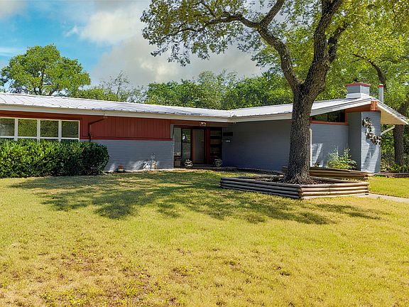 Stunning 1955 Mid Century Modern built for the Clements family with a mother in law suite in a separate wing from other bedrooms. It features a gunite pool and an incredible backyard oasis. Home sits on a large corner lot with mature trees and across the street from an undisturbed greenbelt. You will love the privacy and beautiful views overlooking Mineral Wells in this neighborhood. Five bedrooms in addition to the office or 4 bedrooms and 2 offices. Lots of flexibility and room for all. The kitchen is updated with a gas range and a large window overlooking the greenbelt area which is to the West. Dramatic floor to ceiling doors in the living area complete with mood lighting and a cozy fireplace for the winter nights. The primary bedroom and ensuite are up to date with a shower which measures 5 x 9 and 35 cabinets in the bathroom area and beautiful modern lighting. Primary closet is quite spacious and very private. Only carpet is in the mother-in-law suite which has its own entrance complete with electrical for a small kitchen if desired. 3 car garage awaits the car enthusiast and workshop area. Best of all is the backyard which is awaiting the next owner of this stunning home. The city is undergoing a great transformation, with two historical hotels, one already opened and the other in the near future. Lots of shopping, restaurants and recreation with Possum Kingdom Lake and the soon to be opened Palo Pinto Lakes State Park. Located 80 minutes to DFW International Airport and Mineral Wells has a great private municipal airport. Come and enjoy the Good Life in a charming town and the beginning of the Hill Country of Texas.