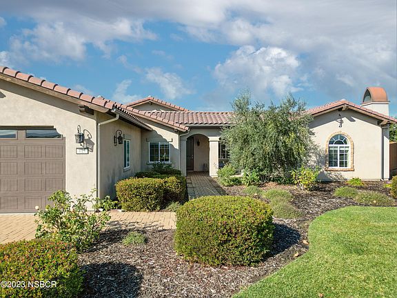 Looking for a nearly new home in an excellent location in Solvang? This Skytt Mesa beauty may be the one. Never lived in since it was built in 2014, this Spanish style perimeter home backs up to open space with western views and features a great room with hardwood floors, fireplace, a spacious kitchen, plus a separate casita or office/bedroom with its own entrance, fireplace, full bathroom, and walk-in closet. You will enjoy the quality amenities including a primary bedroom with vaulted ceilings and a large walk-in closet, two more bedrooms, and a laundry room attached to the like new garage two-car garage. With concrete pavers for the driveway, walkways, and the professional front yard landscaping, this home sits beautifully on the tree lined streets and grass parkways of Skytt Mesa.