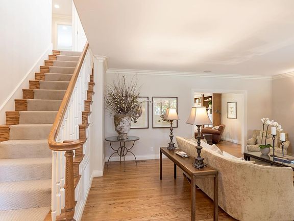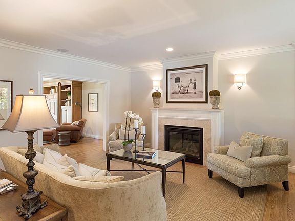 Custom designer home in premier neighborhood just minutes to the Village. Entirely rebuilt in 2002 with architecture by Young & Borlik; design by Terrye Bellas. Beautifully landscaped gardens & mature Japanese maple at the front entrance. Cabinets and shelves by Italian furniture maker, Giuseppe Terramino. Hand-textured walls, hardwood floors and new carpeting. Spacious living room with music alcove and gas-log fireplace outlined in travertine. Formal dining room with tray ceiling and Rivoli chandelier. Bright and light chef's kitchen with custom cabinetry topped in limestone slab, island with counter seating and tiered chandelier. Family room with floor-to-ceiling cabinetry and sliding doors to the rear yard. Master bedroom suite with a large private terrace, fully customized closet with island and en suite limestone bath. Beautiful rear yard with sun-swept pool, outdoor half-bath, bountiful fruit trees, and dining area with vine-covered arbor. Minutes to Shoup Park. Los Altos schools