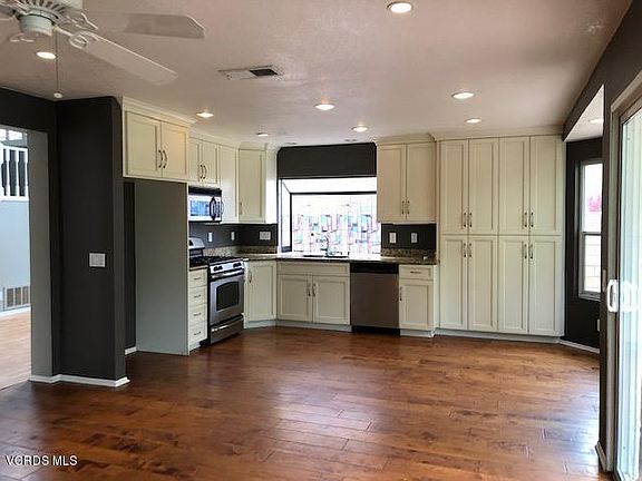 Beautifully remodeled 3+2.5 in Wood Ranch's quiet gated neighborhood. Approx. 1900 sf. Granite in kitchen, wood floors, new carpeting, fresh paint, updated bathrooms, closet organizers, indoor laundry room. 2 story open floor plan.New landscaping, shade structure, 2 car garage. Nice view from patio and open space across the street. Walking distance to park and Tennis Courts. Fabulous location. Ready for move-in.
