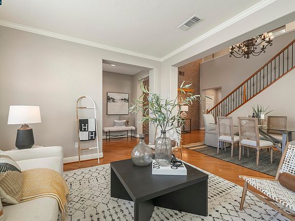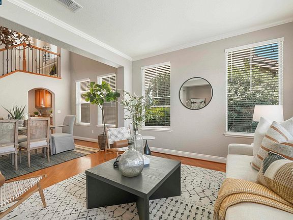 Exquisite and elegant, contemporary home in desirable Ventana community! Quiet neighborhood with friendly neighbors and showing pride-of-ownership at every home. Conveniently located close to Vintage Green Valley Park, trails, farms, vineyards, shopping, restaurants, great schools, freeways and more. Former model home with abundant natural light, tons of windows and high ceilings add to the open feel of this home. Formal living room, dining room and separate, expansive family room featuring built-in cabinetry, gas fireplace, and lush carpeting just installed this week. Large chef’s kitchen has been tastefully and timelessly updated with warm granite counters, stainless steel appliances, an island and breakfast bar. Large pantry with tons of cabinet space and potential wine storage closet. Primary bedroom has a walk-in closet and ensuite bathroom. Interior features include recessed lighting, custom stair-railing, rounded corners, crown-molding, engineered hardwood floors, wainscotting, recently painted in neutral shades, paneled doors and closets. Central HVAC and dual-pane windows. Low maintenance-yard with plenty of space for entertaining or relaxation.
