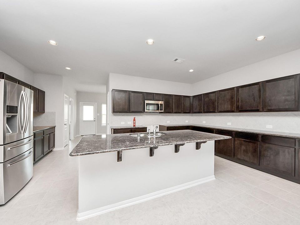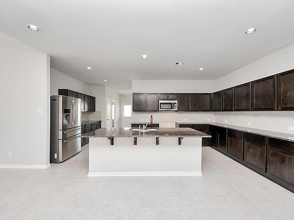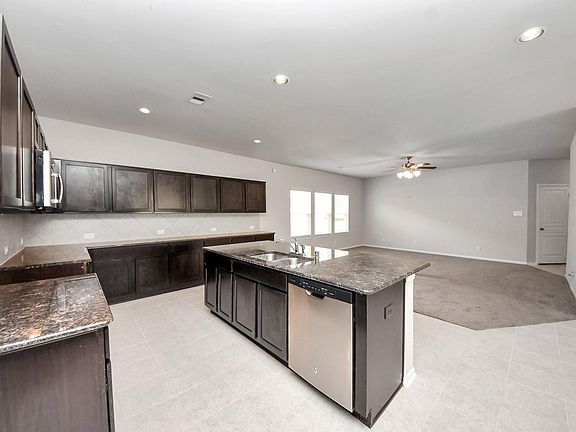 Well-kept one-story home in Crosby with 3 bedrooms, 2 bathrooms, and a 2-car garage. Conveniently located near Highway 90, schools, and the Crosby Fair & Rodeo. The open kitchen overlooks the living room and features a good amount of cabinets, a walk-in pantry, a double-bowl sink, a stainless steel refrigerator, a dishwasher, and a microwave over a gas range. The dining area off the kitchen makes entertaining easy. All bedrooms include walk-in closets and carpet flooring. The spacious primary suite offers double sinks, space for a vanity, a large mirror, a soaking tub, a separate standing shower, and a walk-in closet. The additional flex area in the back can be used as a home office or second living space. Exterior features include gutters, a side yard, and a covered back patio. Low tax rate!