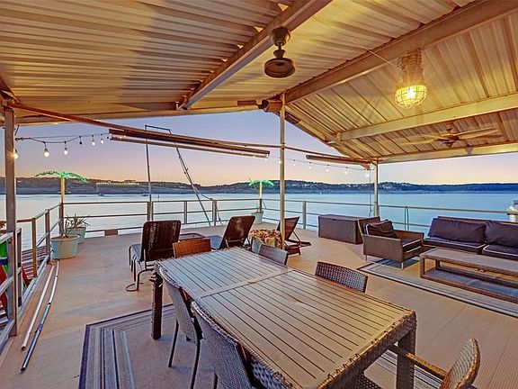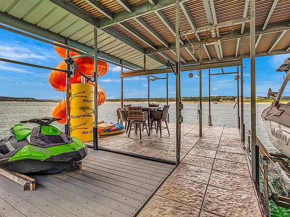 DEEP WATER... Lake Travis Waterfront w/ private boat dock and plenty of water even before the recent rise in the lake level. This beautiful one story home is an entertainers dream. Features include a media room, game room w/ wet bar, large dining room, large family room, private office, exercise room, and huge master suite. Wired throughout for the latest in whole home audio systems. Huge flat back yard with room for a pool.