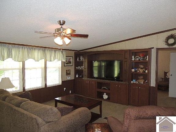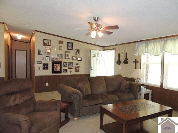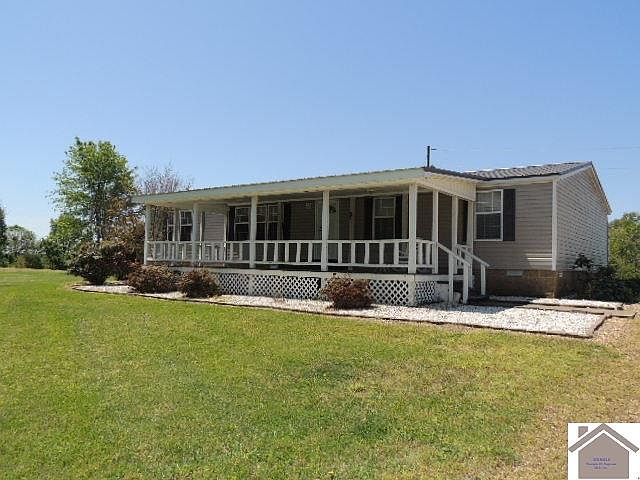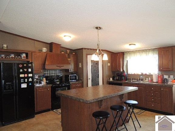 2011 Manufactured home on permanent foundation. 4 bedrooms, 2 baths. Open floor plan with living, dining and kitchen together. Kitchen has abundance of storage with large island and pantry closet. All kitchen appliances stay plus washer and dryer. Large country porch, circular drive and two outbuildings. Beautiful country setting. Refrigerator in utility area doesn't stay with property.