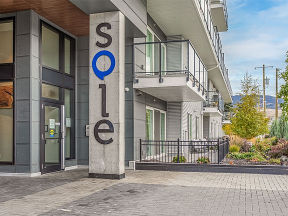 Walk to everything from this beautifully maintained one bedroom unit at Sole Rutland. South facing and bright. Large deck with a mountain view stretches your living space. Well designed layout taking advantage of every square foot! Bedroom with barn door and cheater ensuite. Linear kitchen, stacked washer and dryer. One secure, heated parking spot and a handy storage locker and dedicated bike storage. Building is secure and quiet. Common room with ping pong, wet bar and two decks. Why pay rent for your student or as a young professional?! Affordable and worry-free newer building. One pet is welcome with no size restriction!