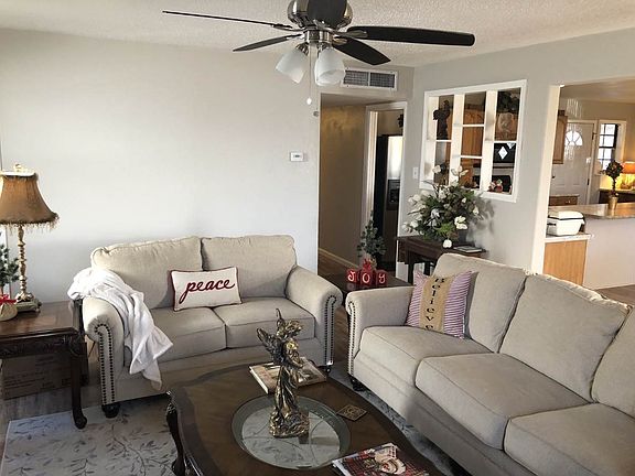 Beautiful remodeled 3BR 2 FULL bath home with fabulous open floorplan. This house has all new interior/exterior paint, new flooring, new counters, new heat and air, new roof & more! Kitchen is huge with large center work island and abundant cabinets. DW and microwave are new. Side by side stainless fridge stays. Wood floors throughout main living areas and hall. Bedrooms have near new carpet, new closet doors and new ceiling fans. The laundry room is large with lots of shelving. Nice covered patio!