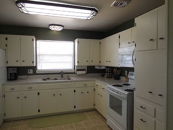 First time home buyers welcome! Light, bright & clean! Spacious eat-in kitchen & all appliances stay. Nicely maintained. New GFAC & Refrigerated Air 2009 up-sized for garage conversion to fourth bedroom per owner. Besides a 4th bedroom, the garage conversion has room for an office/craft room. Added blown-in attic insulation. Neutral colors throughout. Roomy laundry w/storage. Big fenced yard. 2 storage buildings. "Stone" wainscot front.