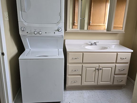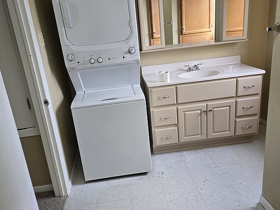 This apartment is huge at 1,800 square feet. It has 2 bedroom 1 bath. It includes washer/dryer (stack combo), refrigerator, stove, central A/C, and the biggest plus is that it includes water and light. The rug is brand new.