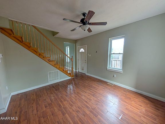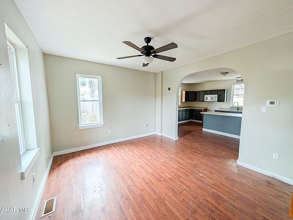 Large Saxton 2 story vinyl home features large kitchen with center island and laundry closet, formal living and dining room plus first floor family room and bath. Upstairs are 4 bedrooms (3 w/ no closets) and full bath. Walk-up attic for storage. Basement is finished with kitchen, bath and living area for possible separate living quarters. AS-IS sale, seller will make no repairs.