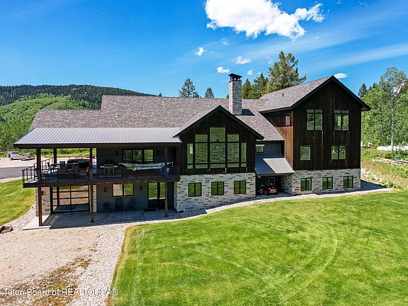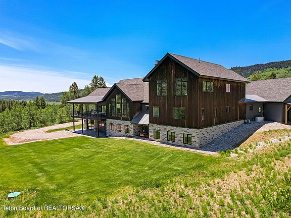 Welcome to Sky Mountain Estate, one of Star Valley's premier mountain estates. Unmatched views & private serenity from the surrounding mountains await. This modern mountain home's peaceful setting offers a colorful, lush landscape situated perfectly on 74 acres bordering National Forest. This beautifully-appointed custom-built home offers nearly every detail you can imagine & has been well designed. High-end interior & exterior details bring out the charm & comfort. Features include but aren't limited to an oversized 4-car garage, backup generator, fiber internet, oversized windows, wrap-around covered decks, full glass entry way, & insulated & heated barn with concrete floors. The entire upgrade and feature list available upon request. Access to home is gated with a private paved drive.