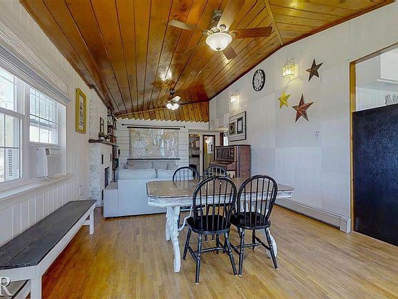 Walls have been removed to make an open floor plan for your family to enjoy! Updated kitchen cabinets, countertop, tile floor, and faucets in 2018. Hardwood floors throughout dining, great room and bedrooms. Exterior paint on aluminum siding in 2014. New electric panel and hookup in 2013. Property sits on 3 lots. Fire pit and treehouse/fort built in 2017. Baseboard boiler heat and window units for A/C. Bath has an updated vanity in 2014. Newer lights and ceiling fans. New shelves and electrical under walk-in hall pantry. H20 replaced in 2017! Laundry in lower level. Owners have never used either fireplace! Dont miss out!!!
