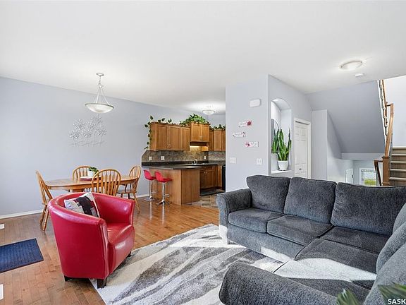Welcome to 615 Stensrud Rd #138 in the desirable gated Willowgreene complex in Willowgrove! This stylish 4-level split townhouse offers 1,194 sq. ft. of living space with 3 bedrooms, 2 bathrooms, and a single attached garage with driveway. The open-concept main floor features maple hardwood floors, a bright living room, and a spacious kitchen with maple cabinets, eating bar, walk-in pantry, and stainless steel appliances. The dining area opens to a sunny south-facing deck overlooking single-family homes for added privacy. Upstairs you’ll find two bedrooms, a 4-pc bath, and a versatile loft — ideal as an office or family room. The recently developed basement includes a comfortable bedroom with murphy bed, 3-pc bath, laundry, and mechanical area. Additional features include central A/C, air exchanger, central vac, alarm system, new hot water heater (2024), and triple-pane windows. Located close to schools, parks, and all amenities — this move-in-ready home combines comfort, style, and security in a fantastic community.
