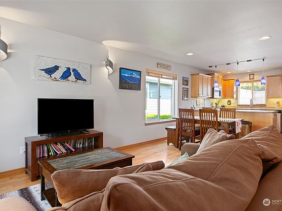 Delightful & well maintained home on quiet street in walkable Cordata! Hardwood floors on the main floor, stainless steel appliances in the bright & welcoming kitchen, wood doors & trim throughout. This home also features a large main bathroom w/ soaker tub & walk-in shower, laundry room, private deck, attached garage and air conditioning. Life is easy on Sunflower Lane! All exterior maintenance & mowing is taken care of by the condo association. Centrally located, this home is minutes away from Costco, Bellis Fair, Fred Meyer, parks and entertainment. These units are rarely available - don't miss this one!