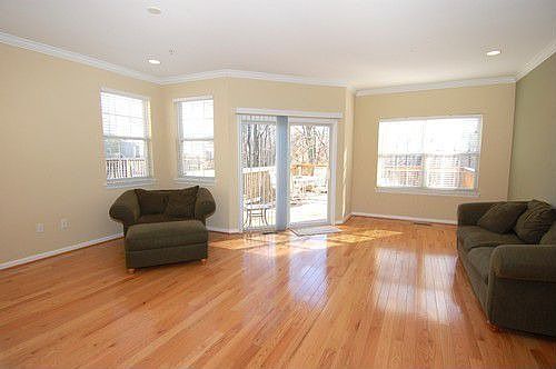 This bright and beautiful END unit townhouse boasts HW floors on the main level, upgraded kitchen, breakfast area and huge LR. Upstairs you'll find 3 big BRs all w/vaulted ceilings including the master w/dual walk-ins and private bath. Finished lower level with rec room, private office and powder room. One car garage, rear deck backing the woods and Nature trail and much MUCH more!