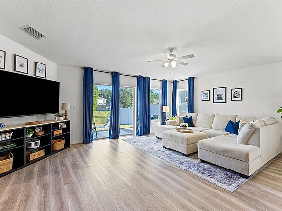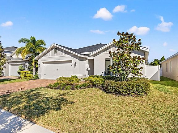 Built in 2021, this beautifully designed home blends modern style with everyday functionality. Step inside to find an inviting open-concept living area filled with natural light, perfect for both relaxing and entertaining. The chef’s kitchen is a standout feature, offering sleek quartz countertops, stainless steel appliances, and a spacious layout that flows seamlessly into the living and dining areas. Luxury vinyl plank flooring runs throughout the main living spaces, while the bathrooms showcase elegant granite countertops and stylish finishes. The spacious primary suite features a massive walk-in closet, providing ample storage and comfort. Enjoy the convenience of a 2-car garage, energy-efficient solar panels, and low monthly HOA fees—with no CDD! Valri Park offers a peaceful community setting with quick access to shopping, dining, and major highways. Experience the perfect balance of modern design, smart efficiency, and low-maintenance living—all in one exceptional home.