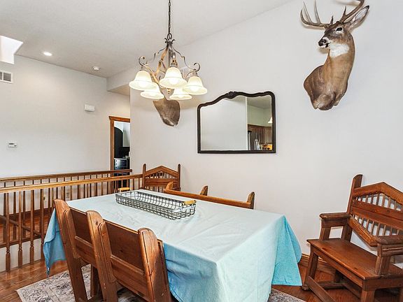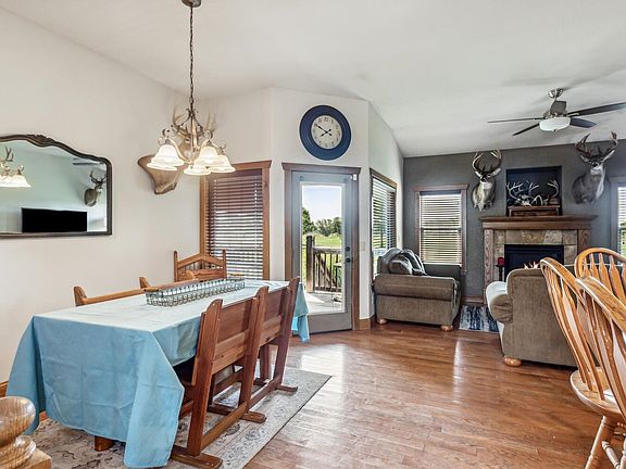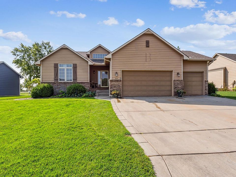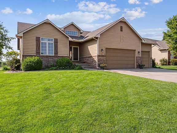 Motivated seller! Golf course living at its finest! This well-planned 4+ bedroom home is located at the 15th tee on the Cherry Oaks Golf Course in Cheney and boasts beautiful views of the greens and a pond. The covered deck faces south/east, so you're able to enjoy the view and entertain in the evenings without the west sun. Walking/biking paths through the golf course lead to Cheney High School. The irrigation well and sprinkler system will keep your lawn looking like an extension of the course itself. This custom home by Perfection Builders has many nice features, including beautiful hardwood floors! The open floor plan keeps the chef in the action while tending to preparations. Enjoy the eat-in bar with plenty of cabinets for storage and counter space for baking. All kitchen appliances stay. The cozy living room features a gas fireplace and a soft place to land after a busy day. The formal dining room is spacious and functional. Tall ceilings make the common areas feel especially voluminous. The split bedrooms add a touch of privacy. Off the kitchen, the primary bedroom has an en suite bathroom with dual sinks and a walk in closet. The separate laundry room with pantry storage leads into the three car garage. Shelving and work benches will remain. Two more bedrooms, one with a walk in closet, round out the main floor. The basement has two main entertaining areas: one with a mantel and plug in fireplace; the other has a dry bar and built in entertainment center with TV and storage space. The below grade (pit) walk out leads to the backyard. You'll find an additional finished bedroom and bathroom downstairs, as well as a HUGE nonconforming room with large walk in closet. It could be the perfect office, gaming room, hobby room, exercise room, or more. The deep storage room provides plenty of space to keep your home organized. The home has been roughed in for a central vac system. All window treatments stay. Volunteer ornate pumpkins in the front garden beds also remain with the property! Built in 2007, specials are set to pay out next year (2025). Come enjoy the peace and tranquility of the country with all the conveniences of being just 15 minutes from Wichita. See you on the course!