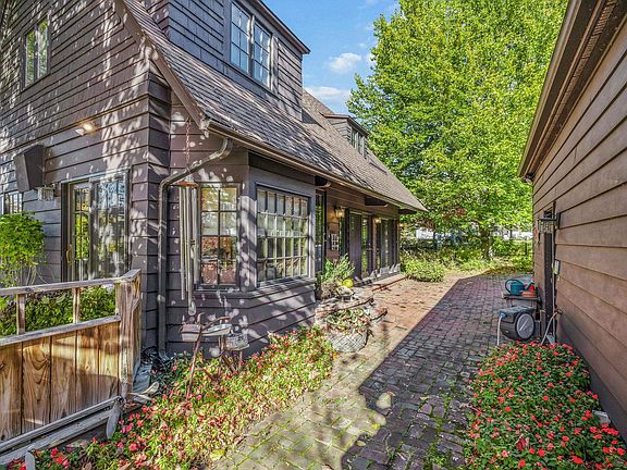 Step back in time to when life was slower and homes were complete with a carriage house!  Welcome to the carriage house of 1885. This showstopping home was remodeled in 1998 with a large addition to increase the living space to over 2300 square feet. This addition has in-floor heated granite tile flooring and includes a main floor primary bedroom suite with a walk-in closet that includes a laundry area, a tile shower, lavatory, a private access to the secluded hot tub, and a view of the double sided fireplace that has claw foot tub for you to enjoy peaceful relaxation!  Another incredible feature in this space is the beautiful great room with vaulted, beamed ceilings and the  double sided fireplace that has a gas ignition to start the natural, wood burning fireplace. The gourmet kitchen and half bath was redesigned by Design Tech. The kitchen includes 2 counter height refrigerators and freezer, open views to the amazing back yard, a huge double door pantry, banquette seating, Viking stove a hidden microwave space, and a workspace desk.  A must see is the half bath has a hand painted sink and vanity by Mackenzie Childs. The next item on your list of must see’s at 615 Main is the inspiring backyard. As you walk through the custom gate onto the deck that wraps around the backside of the house, you’ll enjoy the views of the Tittabawassee River, the rail trail and the parks that surround this yard.  The backyard features to enjoy are the inground pool, and waterfall that slides enters the Koi Pond! This property is zoned both commercial and residential, so the 2.5 car garage is perfect for the buyer looking for an opportunity to be able to work from home.  It has oversized 8’ garage doors that open to a heated workshop, ½ bath, and a 33’ x 14’ office.  There’s so much to enjoy with this amazing home, so schedule your personal showing today!