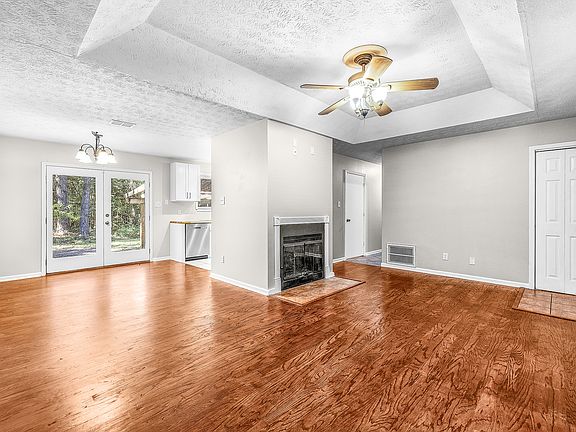 Welcome to this beautifully updated ranch-style home tucked away on a quiet cul-de-sac in desirable Old Pooler! Step inside to find an inviting open floor plan featuring wood and tile flooring throughout no carpet! The spacious living room offers abundant natural light and a wood-burning fireplace, perfect for cozy evenings. The adjoining dining area flows into the modern kitchen, complete with stainless steel appliances, new cabinetry, and butcher block countertops overlooking a peaceful, tree-lined backyard. The home features two generously sized bedrooms that share a full guest bath, and a primary suite with a private ensuite bathroom featuring a walk-in shower. Additional highlights include a laundry room with washer and dryer connections and ample storage space. Enjoy your morning coffee or evening gatherings on the expanded, partially covered patio, offering serene wooded views a perfect spot for relaxing or entertaining. Conveniently located just off I-95, this home offers quick access to shopping, dining, and entertainment in Pooler and the greater Savannah area. No pets permitted.