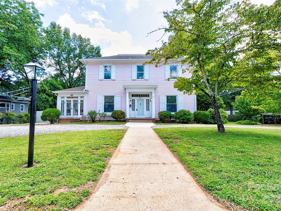 Spacious and full of potential! This 5BR/3.5BA traditional two-story home sits on a beautiful tree-lined street just minutes from uptown Shelby. Featuring hardwood floors, large formal and informal living areas, and multiple fireplaces. Newer kitchen with granite countertops, stainless steel appliances, and plenty of cabinet space. Sunroom, Rear deck and fenced backyard—great for entertaining or relaxing outdoors. Additional features include two staircases, basement workshop and storage, ample parking, and all appliances remain. Previously used as both a private residence and business—ideal setup for home office, multi-use space, or possible bed & breakfast (buyer to verify zoning/use).