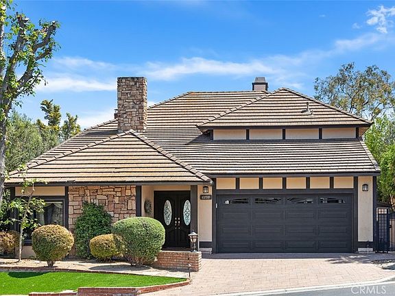 Million dollar rear west facing views! Move right in and start enjoying this 3BR+office (that could be converted to 4th bdrm if desired). Situated in the guard gated community of Rocking Horse Ridge, you can enjoy beautiful vistas from the kitchen, family room, patio, primary suite & office. The double door entry takes you inside this well-appointed home w/lots of custom features. Gleaming wood floors welcome you into the foyer & large living room w/vaulted ceilings & fireplace. This space flows to the dining, rm, family rm w/built-in wood cabinetry w/glass shelving, tiled gas fireplace w/mantle & sliding door that leads to the patio & outdoor living space beyond. A wet bar w/copper countertop is nestled btw the family room & kitchen which is perfectly positioned for hosting and entertaining. The kitchen is well laid out for cooking & gathering w/grand island w/gas cooktop & vent hood, custom wood cabinetry & drawers for storage, including elegant glass door uppers. Appliances incl. double oven w/warming drawer, stainless steel dishwasher & refrigerator. The sunny & spacious eating area is an ideal backdrop to dine & also has sliders that lead to the patio & outdoor living space. Going outside, you'll enjoy a covered patio, artificial turf, hot tub, firepit & built-in summer kitchen where you can enjoy beautiful sunsets and glistening city lights. The 1st floor features a half bath & laundry room near garage. Going back inside, stairs lead to 2nd floor where all the bedrooms are located. The grand primary suite has large sitting area to take in the views, fireplace, walk-in closet w/built-ins. The bath has dual sink vanities, soaking tub, large walk-in shower & water closet. The primary suite flows to office w/custom built-in workspace & cabinetry. This space also has lots of windows to take in the inspiring views. It could be converted to 4th bedroom if desired. There are also 2 bdrms & remodeled bath w/sleek & stylish vanity, beautiful tile floors & modern, clean lined shower w/shampoo shelf & transom window. The garage has epoxy floors & built-in cabinets for storage, additional drawers & refrigerator! Community amenities incl. park w/panoramic view, pool, clubhouse, pickleball & tennis courts. Convenient to shopping, Santiago Canyon College, Chapman Global Medical Center, Chapman University & Orange Hill Steakhouse! Short drive to Irvine & Newport Beach. Take advantage of this outstanding opportunity that's well priced to move!