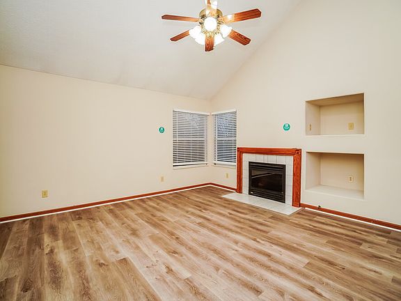 Fenced-in yardVaulted ceilingHip bonus loftThree bedroomsTwo-car garageStunning fireplaceBeautiful overhead lighting fixture