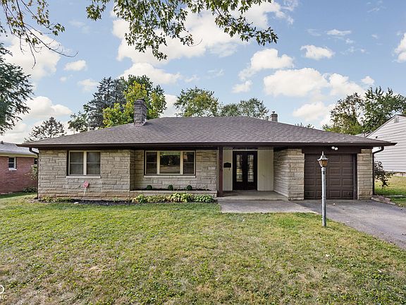 Beautifully maintained Mid-Century Modern home featuring 2 bedrooms, 3 full baths, and an open, versatile layout. The office includes a closet and full bath, making it possible for a 3rd bedroom or guest suite. Enjoy the spacious primary bath, hardwood floors, Pella thermal windows, and generous closet space throughout. Distinctive limestone exterior, covered front porch, and a large fenced backyard with deck create perfect indoor-outdoor living. Major updates include a new sewer line (2025), furnace & A/C (2021), water heater (2018), and water softener (2023). Conveniently located near Broad Ripple, this home blends mid-century charm with thoughtful modern updates.