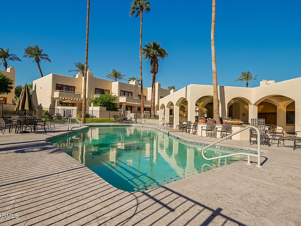Discover a charming retreat, in a sought-after community in the Scottsdale/Paradise Valley corridor. With stunning architecture, lush landscaping, and an atmosphere that feels like a private resort, this neighborhood is truly one of a kind. Once you move in, you'll never want to leave! You will enjoy easy access to upscale dining, boutique shopping, grocery stores such as Trader Joe's, AJ's Fine Foods, Houston's, Blanco, Paul Martin's, Flemings, & many more local favorites. The pool area is the heart of the community — a gathering place where residents relax, swim, and socialize year-round. This end-unit, two-story home includes 2 bedrooms, 2.5 bathrooms, and only one shared wall, offering a perfect balance of privacy and community. The HOA has maintained the community with care, ensuring the property's timeless appeal and lasting value. It's an ideal home for full-time living, a vacation property, or an investment opportunity. It is also located in a highly desirable area with strong school options for families. It combines the ease of condo living with the prestige of Paradise Valley.