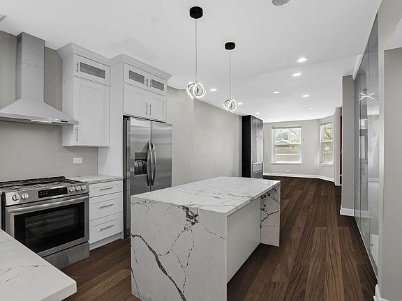 Experience luxury living in one of East Woodlawn's most sought-after blocks-just steps from the University of Chicago and minutes from the Obama Presidential Center. This turn-key, 4-bedroom masterpiece features a smart and stylish layout with one bedroom on the main level, two on the upper level, and one in the finished basement. As you enter, you're greeted by a sleek glass staircase, a warm fireplace, and an open-concept living space that flows effortlessly into a five-star chef's kitchen-perfect for entertaining. Upstairs, the expansive primary suite offers a fireplace and a spa-inspired bathroom with a soaking tub, double vanity, and LED mirror. The home also includes a new concrete parking pad, a rare oversized fenced backyard, and premium finishes throughout. Stop by for a private tour today to secure your new luxury home and be settled in just in time for the holidays. Enjoy the best of city living surrounded by stunning architecture, parks, and all the vibrant amenities East Woodlawn has to offer.