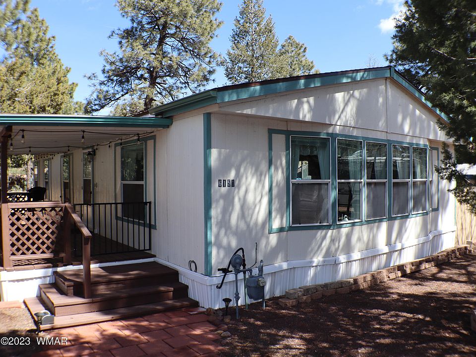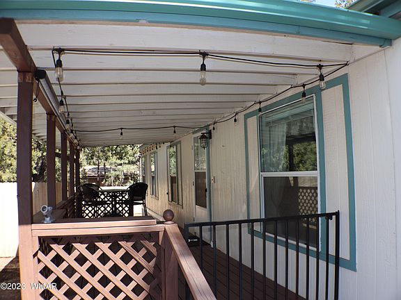 This 2 Bedroom / 2 Bath Brighton double wide mfg home offers 1,456 sq ft of living area on .17 of an acre. It was built in 1999 and is in great condition. You'll enjoy the covered front deck and the 6 ft wooden privacy fencing in the backyard. Home is on Natural gas, Sewer, AZ Water Company and Navopache electric. There's also high speed cable internet available through Sparklight. The home comes furnished with the larger furniture only - wall hangings, countertop microwave and BBQ grill don't convey. This would make a Great little AirBnB property and it's pretty turnkey with furnishings. No HOA. Evap cooler has been disconnected but does convey. Tall pines on the property.