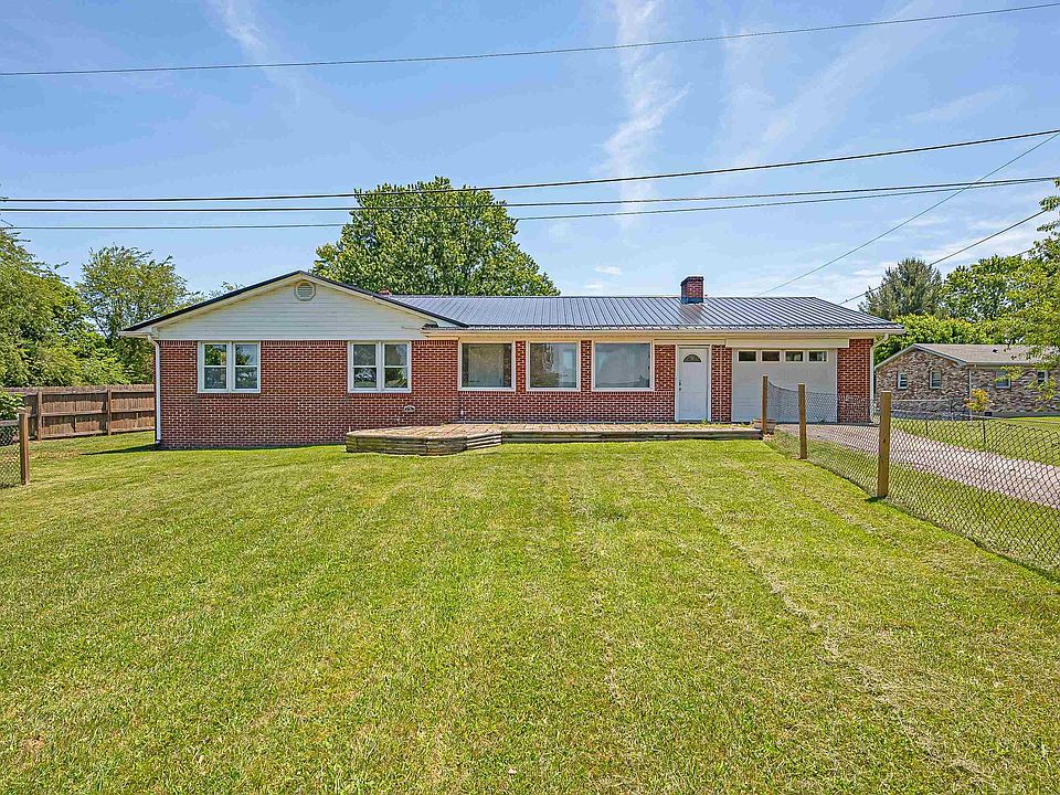 MOVE-IN Ready! This spacious brick ranch with double garages, located in Dublin, has amazing long range sunset views, garden space and a fenced yard. Enjoy year around entertainment and space with your enclosed 19 x 34 garage/porch. One level living with Primary Bedroom with En-Suite Bathroom, 2 Additional Bedrooms, Hall Bathroom, Living Room, Kitchen and Laundry Room on main level. Expand your living space by utilizing the partly finished basement for an office, an exercise area, game room, craft room, den or possible additional bedrooms. Basement has covered access into the back garage as well as a canning room and a pantry room for extra storage. Could possibly be converted into a AUD for additional income. NEW metal roof, NEW French Drain system, NEW fencing in front yard, NEW Stain-master Pet Protect Carpet, NEW Sump Pump. Heat Pump Serviced. Comcast Internet. Close to I81, NRCC, Volvo, NRV Fairgrounds and shopping.
