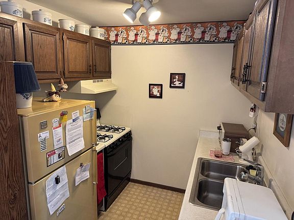 This cozy 1-bedroom condo offers convenience and comfort. The step-saver kitchen keeps everything within reach and comes complete with all appliances. A spacious living room features sliding glass doors that open to a private deck--perfect for relaxing or entertaining.The bathroom includes a vanity with extra storage and a tub/shower combination. Enjoy summer days at the secluded in-ground outdoor pool, a true retreat right at home. Additional perks include secure intercom entry, underground parking, laundry facilities, and private storage.Don't miss out on this opportunity--schedule your showing today! This condo won't last long!See attached for association improvements.