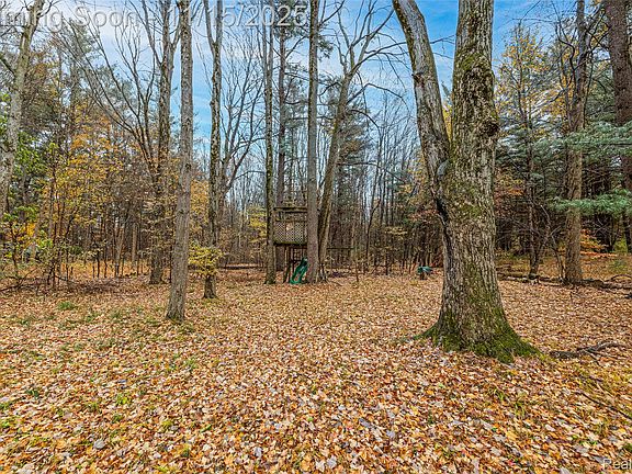 Hard to find, quad-level home situated on 5 peaceful acres (165' wide by 1,320' deep), featuring a partially fenced yard perfect for your furry friends. This spacious open concept home offers a large kitchen overlooking the inviting family room with a fireplace, and an oversized breakfast room that easily accommodates seating for 10. A doorwall from the breakfast room opens to views of the wooded property, fenced yard, and children’s play structure.