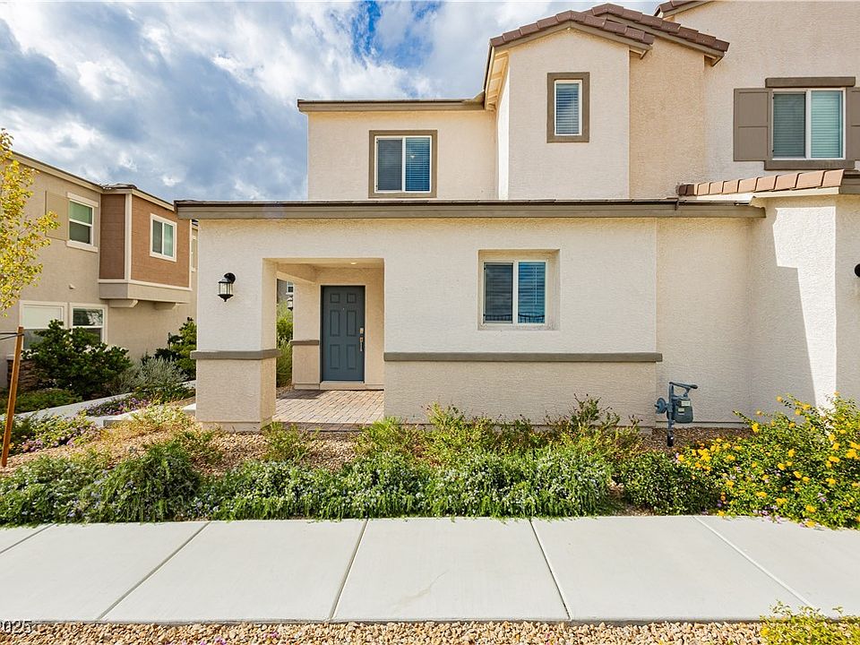 BEAUTIFUL NEARLY-NEW 4 BEDROOM TOWNHOME WITH STUNNING STRIP AND MOUNTAIN VIEWS! Enjoy unbeatable views right from your front porch—perfect for watching Strip fireworks without leaving home! This modern, spacious townhome features an expansive chef-style kitchen with stainless steel appliances, ample counter space, and an under-sink water filtration system. A whole-home water softener adds an extra touch of comfort. Upstairs, you’ll find four generously sized bedrooms, brand-new luxury carpet throughout, freshly painted walls, and a convenient separate laundry room. The attached two-car garage includes a sleek epoxy floor for a clean, upgraded finish. Located in a gated community offering a park and fantastic playground, this home is just minutes from the shopping, dining, and activities of Centennial Hills and Summerlin. A rare combination of comfort, convenience, and incredible views—don’t miss it!